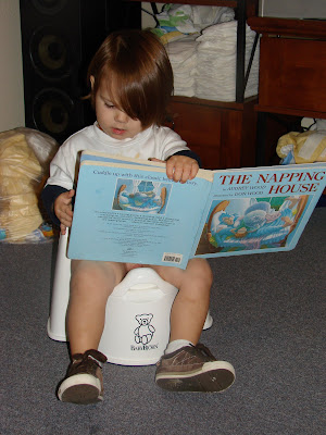 Ethan looks like he is concentrating…hopefully, there will be no wet pages! (But even if there are wet pages, the fact that he is sitting on the potty makes up for it! LOL!)