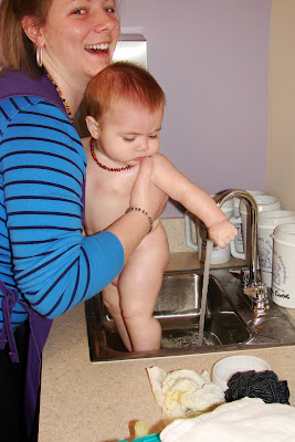 I love the sink bath. CJ would be trying to pull up on the spigot!