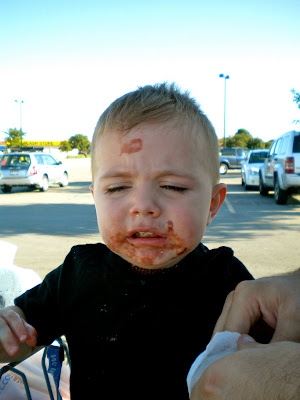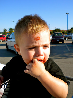 Carrie Cotter says June 25, 2010 at 10:38 am I was thinking BBQ sauce as well…I’m not sure what it is but you might want to run him through that car was in the background! 🙂 Reply