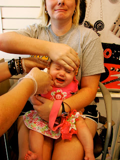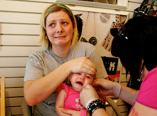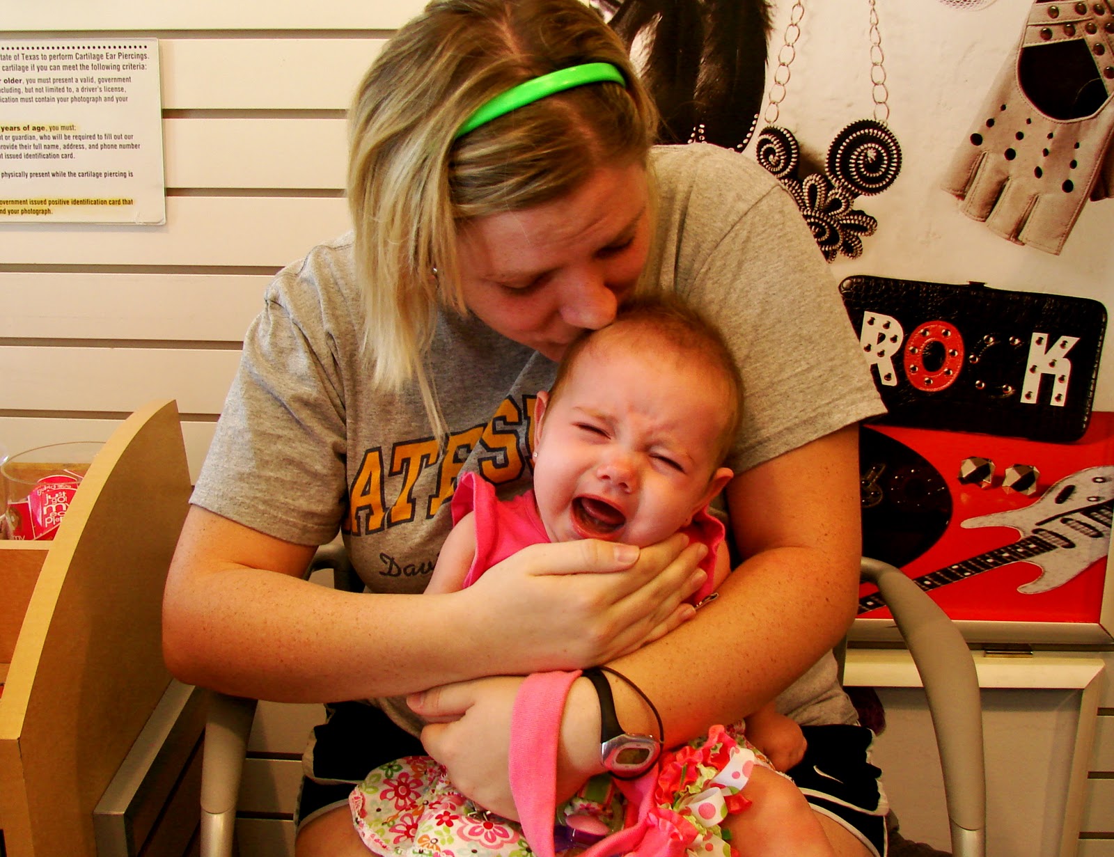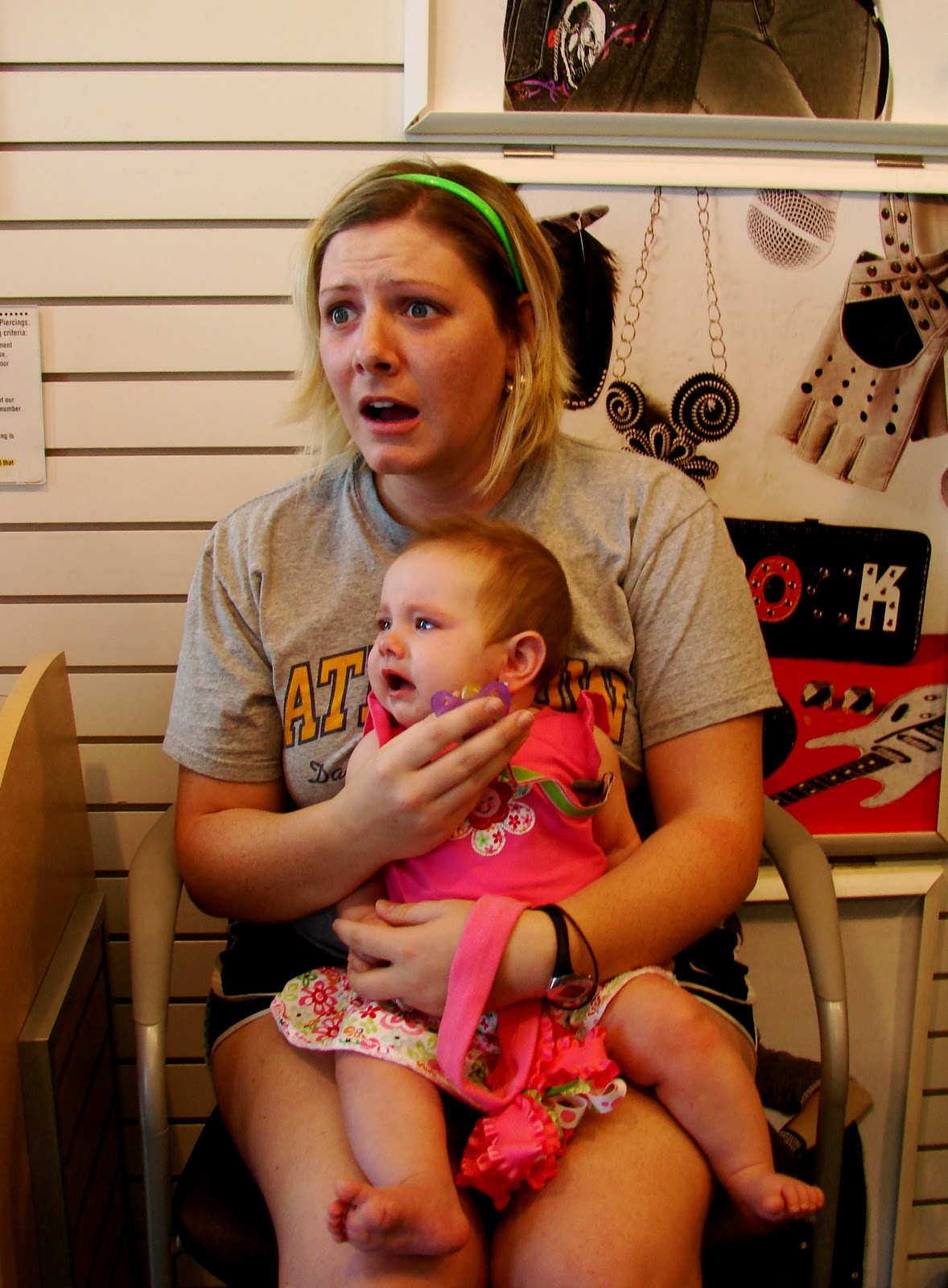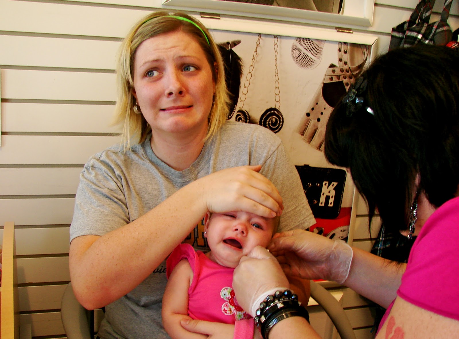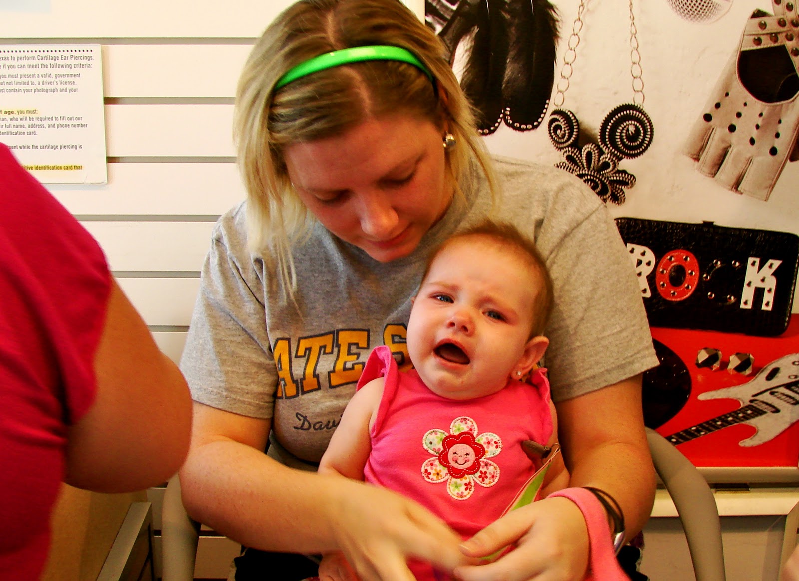 Yesterday we did decide to go ahead and have our daughter’s ears’ pierced. Everyone was excited, my mom and sister came…but as the time for the piercing grew closer and closer I began to get nervous.
