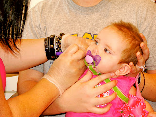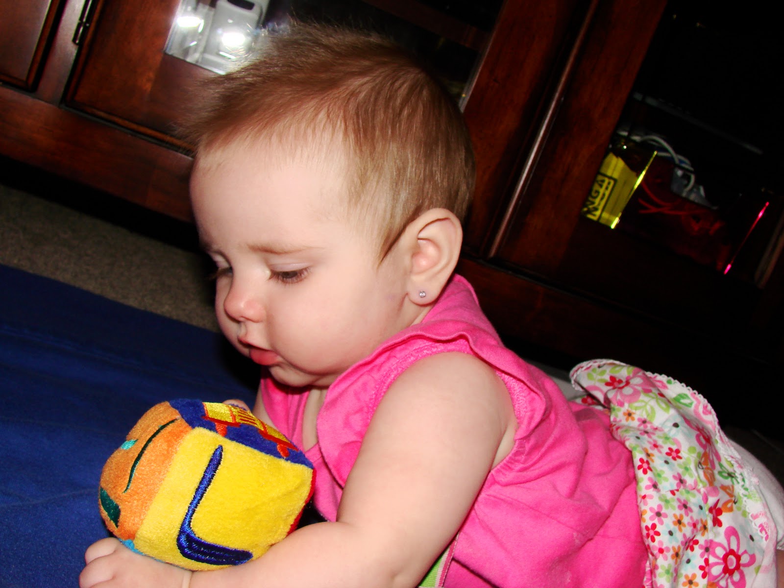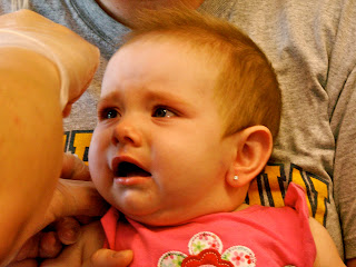 Ahh, she looks so cute with pierced ears. I wouldn’t have been that strong, I would have died. Isabelle cries so hard, she holds her breath and nearly passes out. Paisley is one tough cookie. 🙂