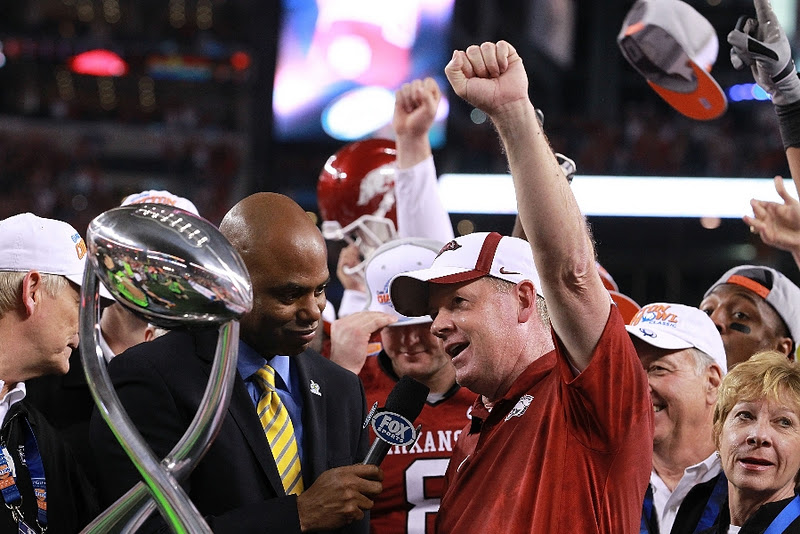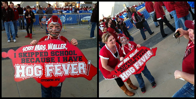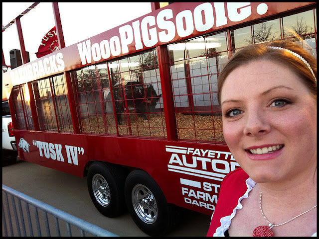 I am CRACKING up at the Razorback attire. Oh, geez. So claaaaassy.