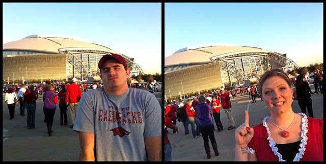 I CANNOT tell you how excited I was to get to go!!! I mean, it seriously was meant to be since we live in DFW and our Razorbacks made it to the Cotton Bowl.