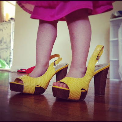 abby LOVES wearing my wedges — she looks hilarious in them but yep, girly girl for sure! twirling, dancing & singing. ALL. THE. TIME.