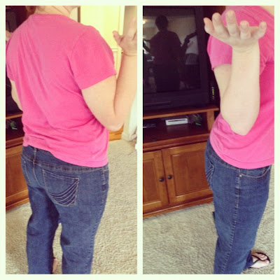 These are the jeans I got as a Christmas present…they were a little tight then. Now I can pull them off without unsnapping the top! THIRTY pounds down…and THIRTY pounds to go. I’ve slowed down on the weight loss, because I’ve hit a plateau…of not going to the gym! ugh! Someone text me each day to make sure I go! (P.S. totally didn’t mean to pretty much cut myself out of the second picture, it was my first time using the collage app on my phone. sigh.)