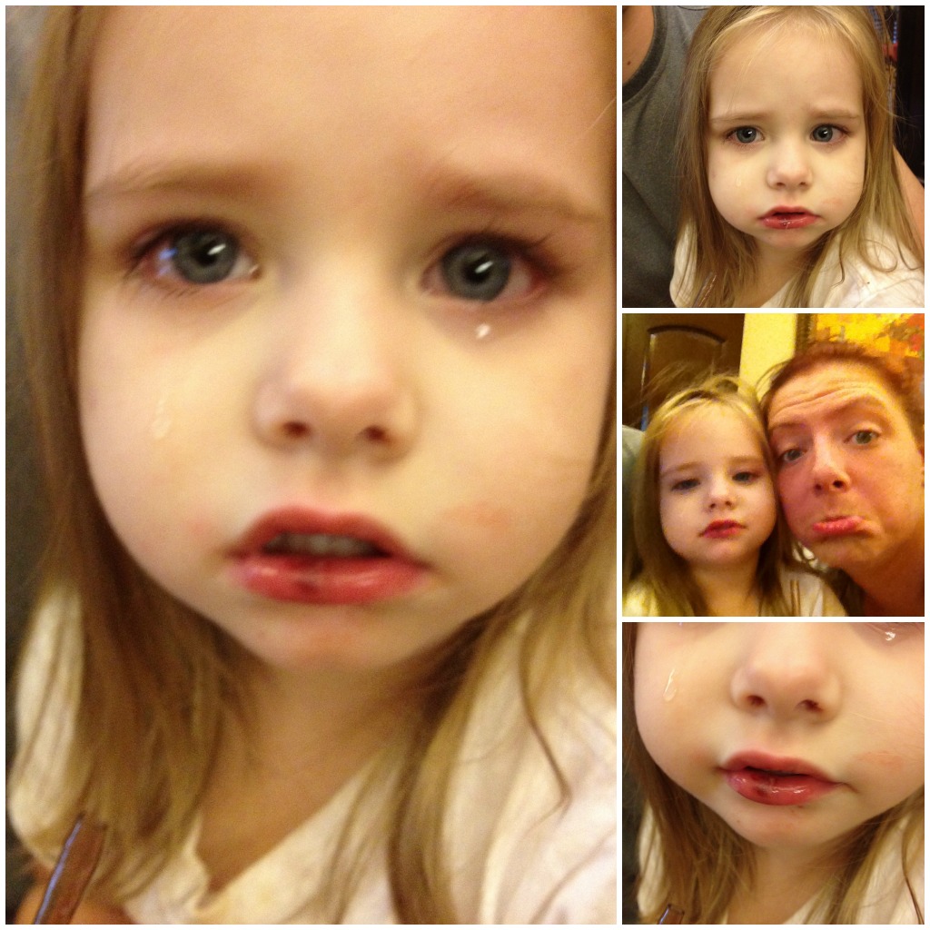 On the wedding day, Paisley fell out of her chair at breakfast and busted her lip.