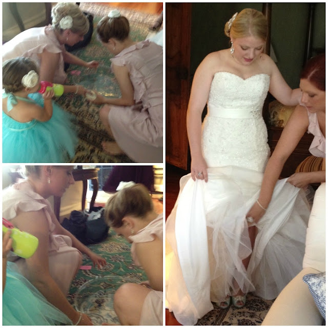 Helping the bride cool down and ice her feet.