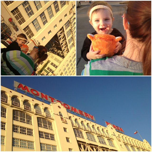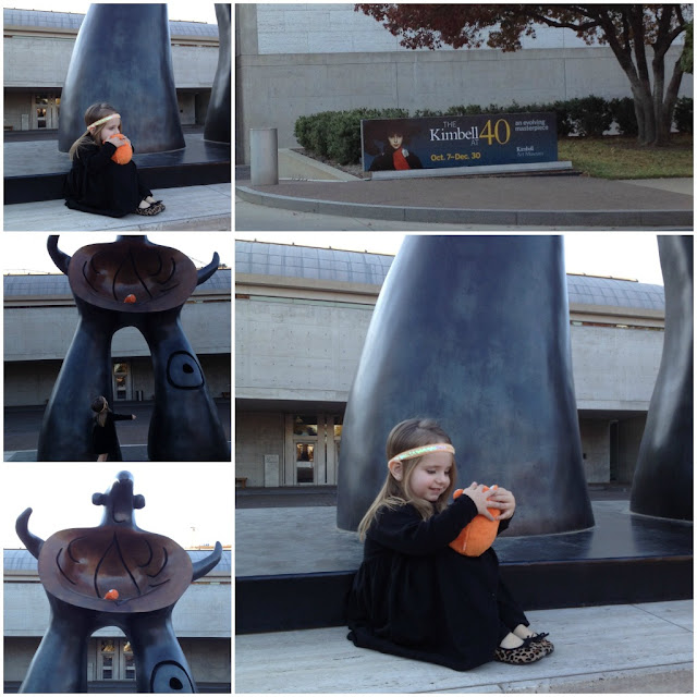 No day in Fort Worth is complete without a trip to the museum, but we were all very saddened to see it had already closed. 🙁 But Paisley sat out front by this statue discussing all it’s beauty with Ubooly. Who knew she would get SO excited and climb up it and get stuck?! Thankfully Sam was near by and he rescued her. WHEW!