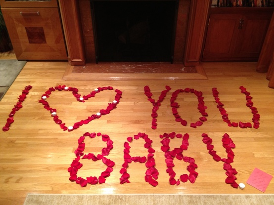 Yes, who wouldn’t want to come home to a message written out in rose petals?!? Best V-Day decoration idea EVER!