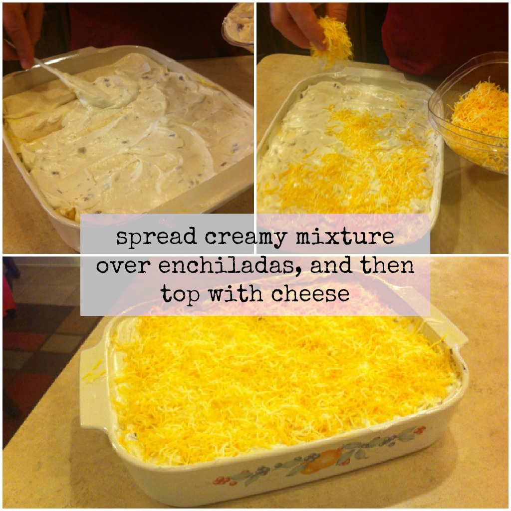 Spread sauce over the top of your enchiladas evenly.