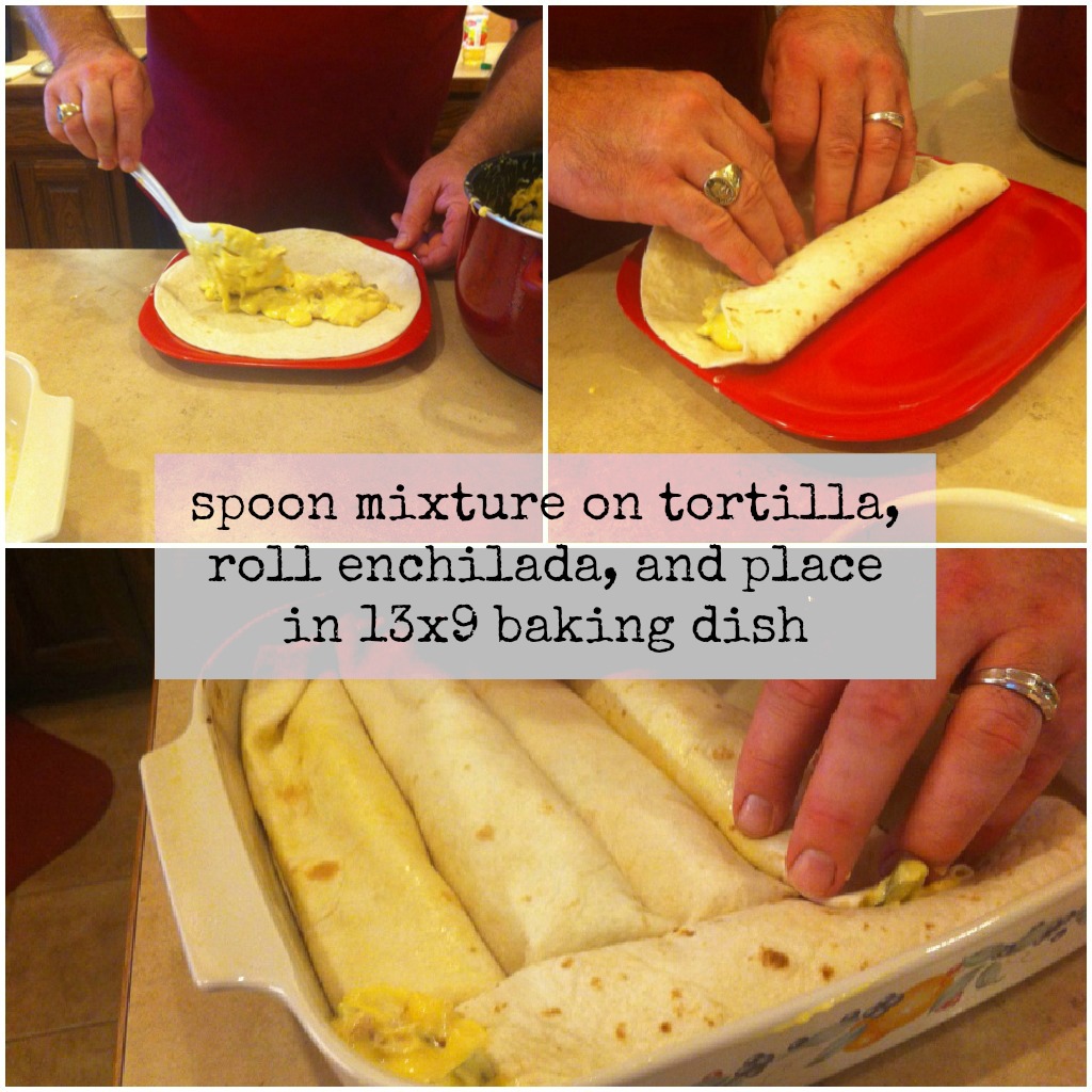 Repeat until all tortillas are full and in the dish!