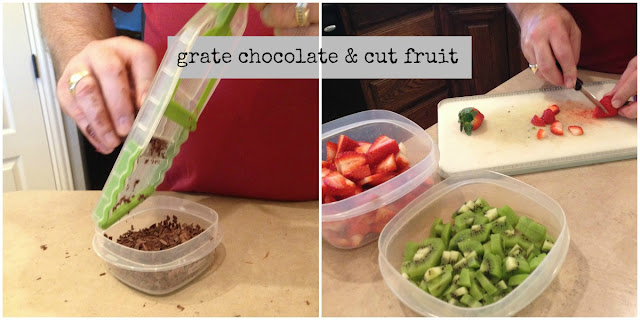 Sprinkle on your sweet/creamy mixture, then add your fruit, chocolate, and almonds as desired!