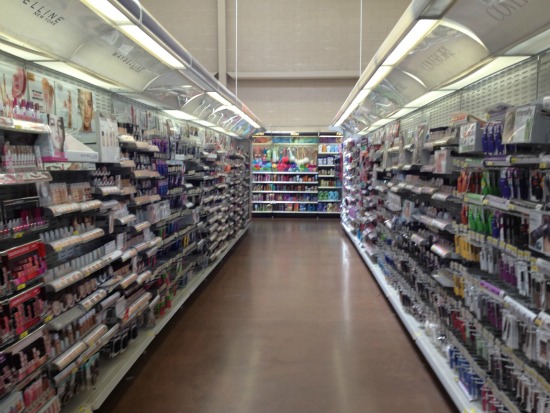 When showering and wearing clean clothing seems to be optional, there is no sense in believing I’d be doing my hair and applying make up. This kind of puts me in a funk. I don’t feel pretty, confident, or really like a woman at all. And I’m sure my husband would like to see a hygienic, quaffed woman once in awhile, ha! But when I dusted off my make up bag, I was surprised at how long I had these items… isn’t that unsanitary?! They needed to be thrown out and I needed some fun, new, easy items back in that bag STAT. The shopping part scared me though, especially when the aisle of Wal-Mart look like this.