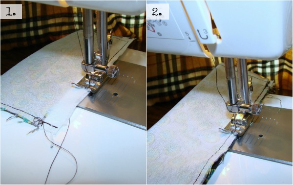 Then fold the small strip in half, inside out, and sew it with about an 1/2in. on the end.