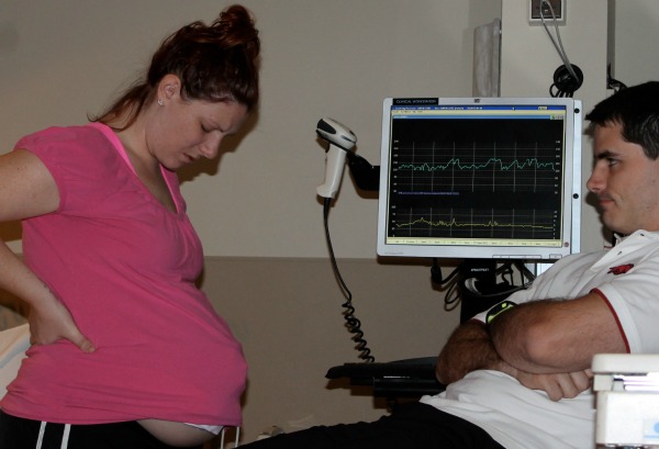 As I signed in and began registration (even though I pre-registered) I could feel my contractions slow. Just like that. My body was locking up like Fort Knox, and going from contractions every 4 1/2 minutes, to 7 minutes, then every 13 minutes. Really? It has to be my body’s reaction to all the stupid questions they deem necessary for a laboring woman to answer. “Level of schooling completed?” Why? Will my va’jay’jay be better equipped to push out a child if I’m packing a PhD? This lull just made me want to go home. I was tired and if this was false labor I wanted nothing to do with it. My midwife was nowhere to be found because she was in another delivery, so the nurse checked to see if I had progressed any. 5cm dilated and 80% effaced. . . so we waited. And passed the time cracking jokes and listening to my sarcastic remarks, it was fun for all.