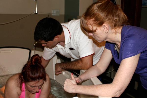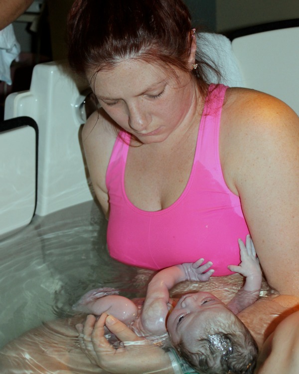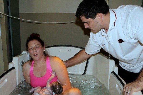 If anyone ever asks me if a water birth was great and eased my pain I will answer yes without any hesitation. But I never expected to have such severe back labor this time around. I was trying so hard to push my back up against the wall of the tub in hopes of some relief. Finally I had to get on my hands and knees while Sam pushed on my hips. To me it felt like he was gently applying pressure, but Sam says he was pushing on my back so hard. Yeah, back labor is a biznatch. But Sam-He was amazing.