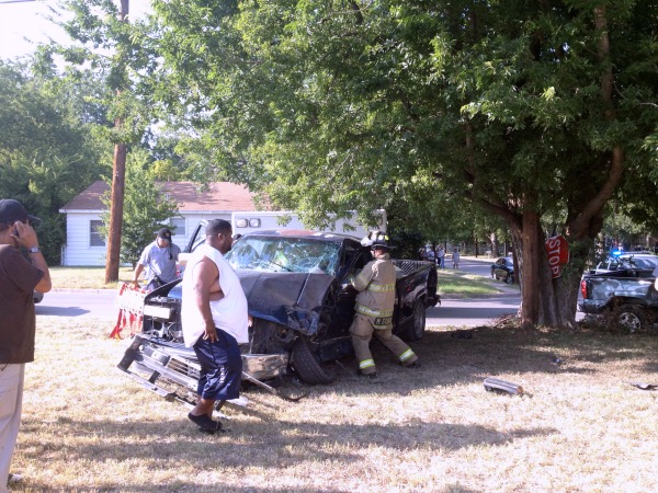 The poor driver and passenger were stuck in their truck with no way out. So we all just stood there wanting to help, to fix all of this mess, but we ended up staring at them like they were an exhibit at the zoo. The driver, clearly in pain, was clutching his chest and moaning. All I could think was, “Lord don’t let him have a heart attack right now.” I heard the voice from a guy walking out and around the other truck. “Is everyone okay? I didn’t see the stop sign man, I’m sorry.” Though his initial concern seemed sincere, it became clear all this guy cared about was the cigarette he was sucking down until the cops came.